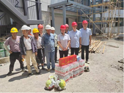 夏日炎炎,安庆近日开启“炙烤”模式,公司开评标场所搬迁改造项目工地建筑工人顶着烈日战酷暑、保工期,有序开展着高温作业。7月24日,皖宜公司副经理尹炜一行前往工地现场,慰问战高温、冒酷暑坚守岗位的一线工作者,为他们送去清凉与关怀。