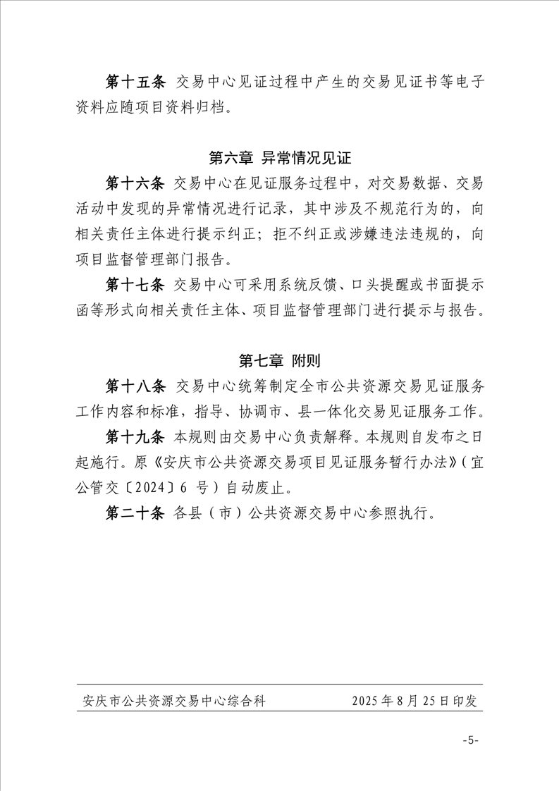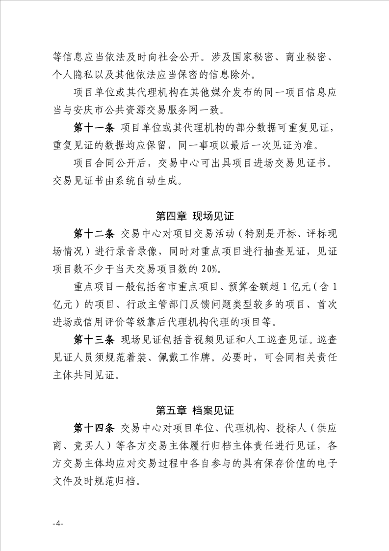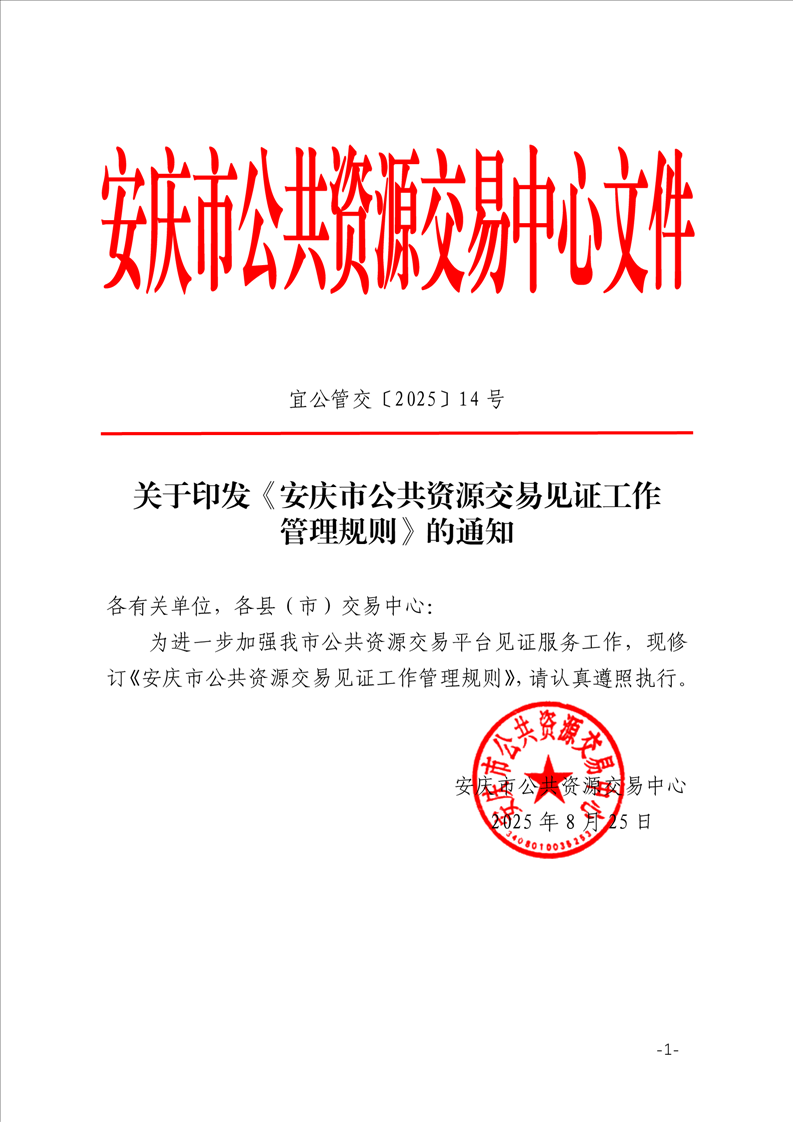 关于印发《安庆市公共资源交易见证工作管理规则》的通知
