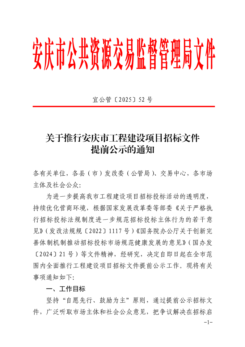 关于推行安庆市工程建设项目招标文件提前公示的通知