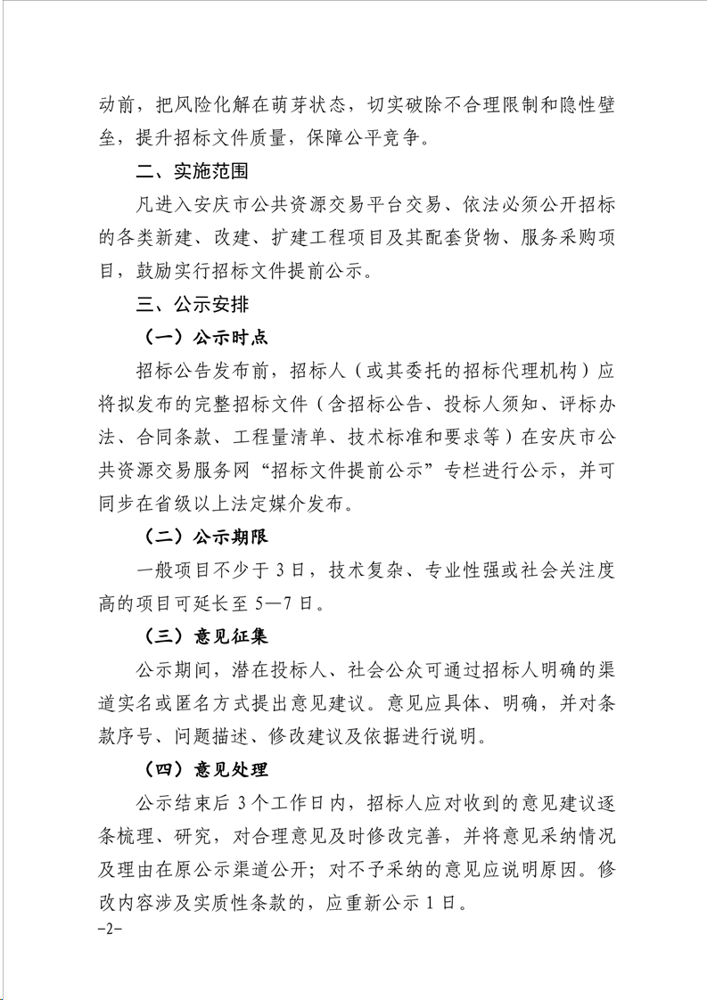 关于推行安庆市工程建设项目招标文件提前公示的通知