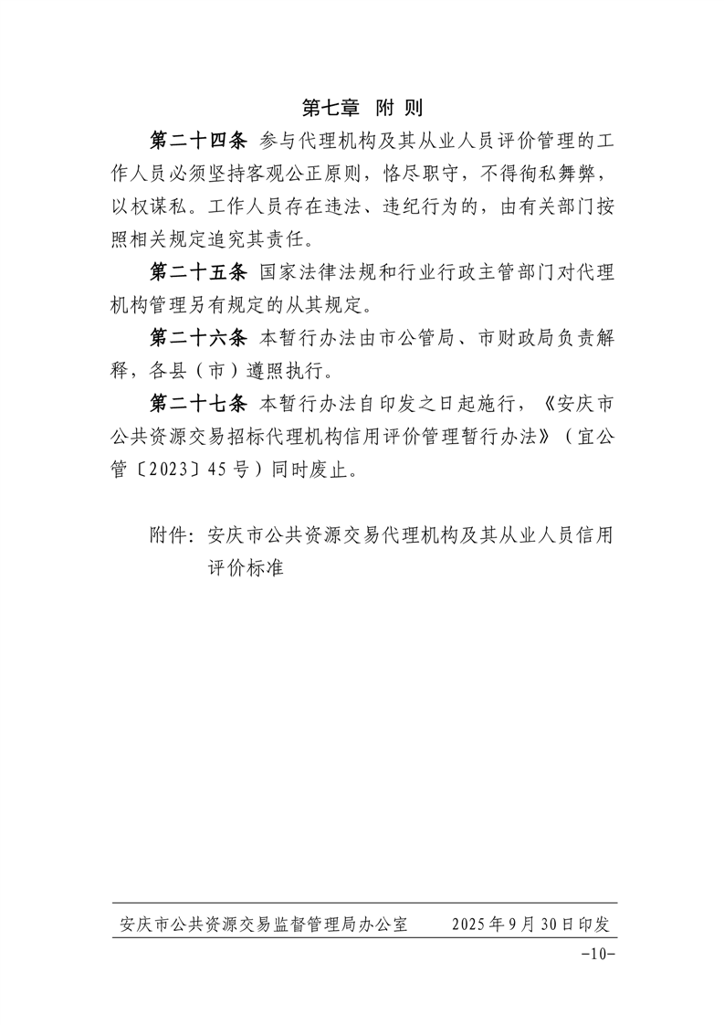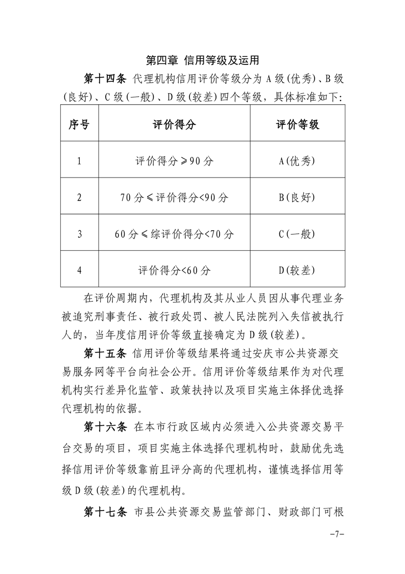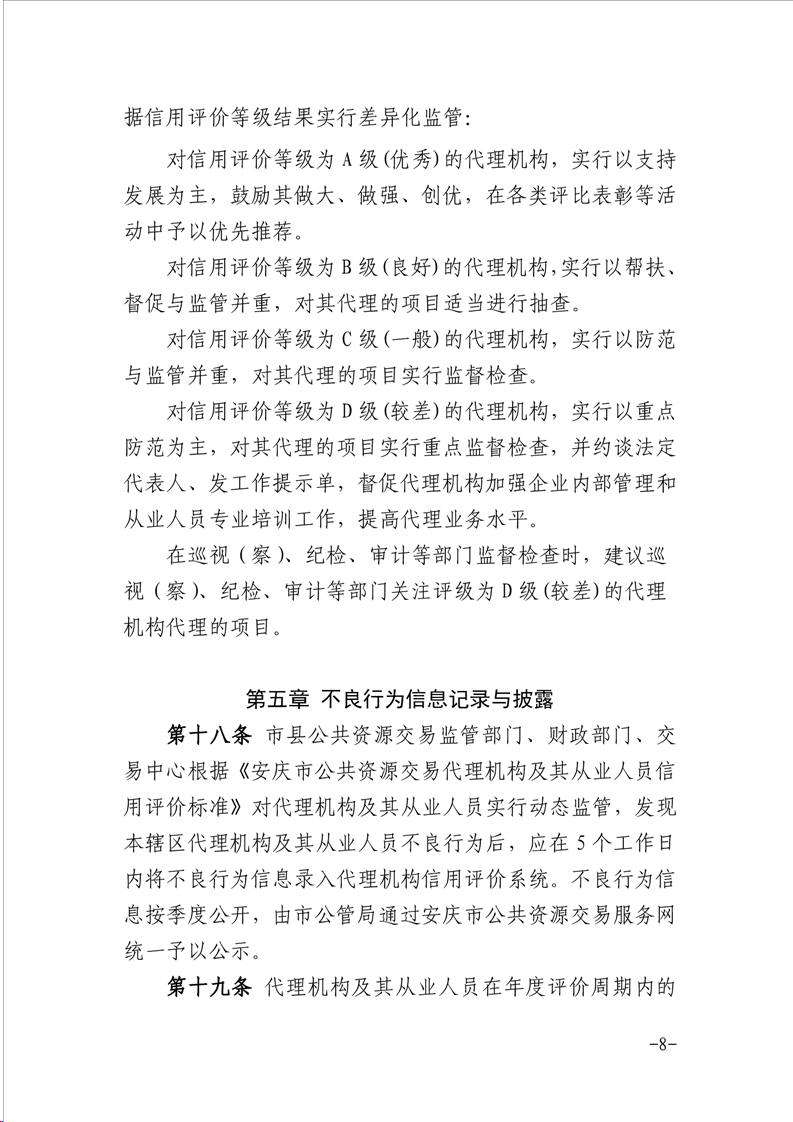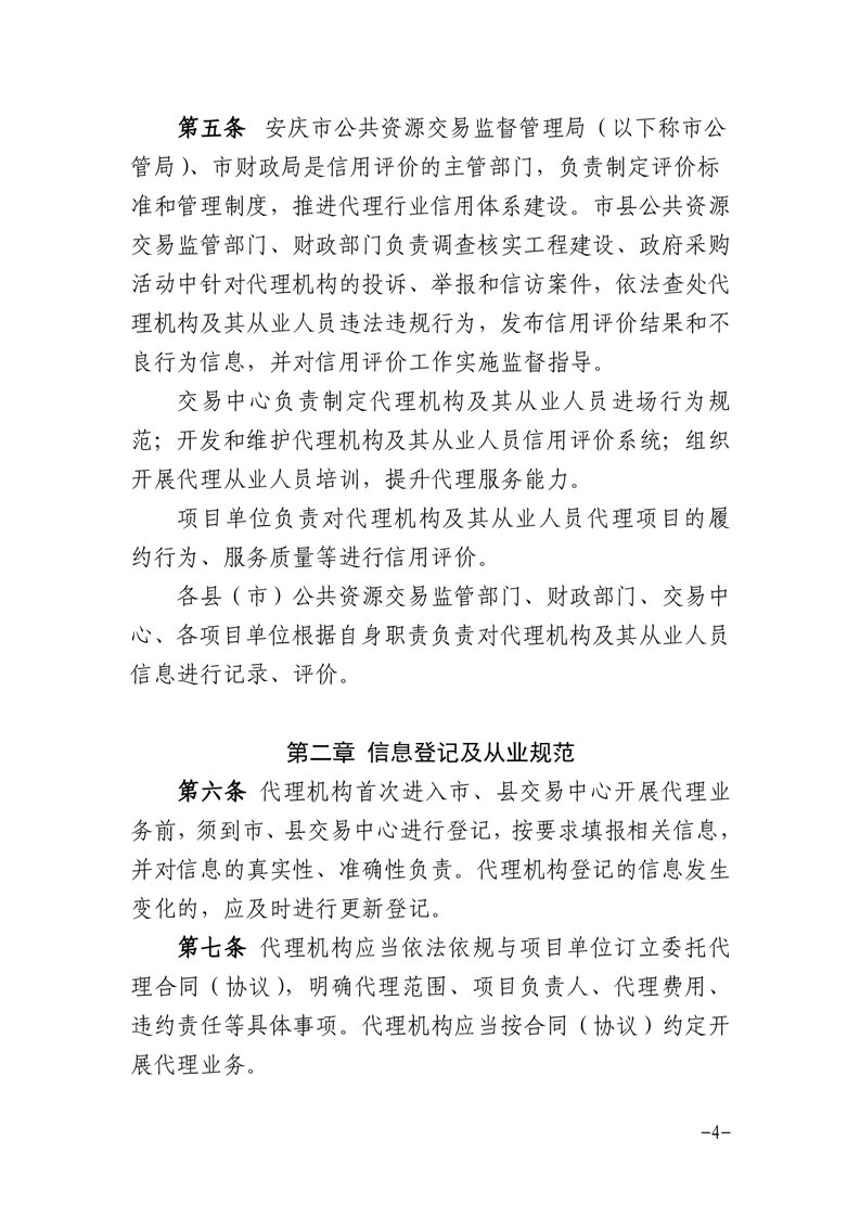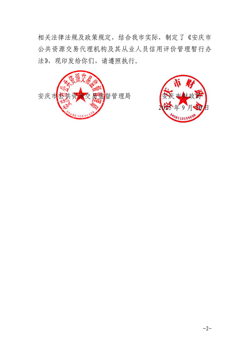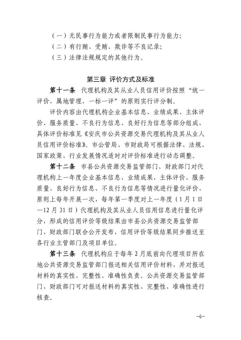 安庆市公管局 安庆市财政局关于印发《安庆市公共资源交易代理机构及其从业人员信用评价管理暂行办法》的通知