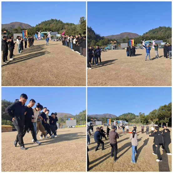 下午,大家前往拓展营地开启团建篇章。团建活动现场氛围热烈,趣味盎然,击鼓颠球、两人三足、不倒森林、团队拔河等一系列精心设计的项目依次开展。在击鼓颠球环节,队员们密切配合,紧盯鼓面与彩球,通过默契协作控制鼓的节奏,一次次将球稳稳颠起;两人三足比赛中,搭档们喊着整齐的口号,迈着协调的步伐奋勇向前,充分展现了分工协作的重要性;不倒森林项目里,大家手眼协调、反应迅速,在保持自身杆子稳定的同时兼顾队友,深刻体会到团队协同的核心要义;团队拔河比赛将活动推向高潮,各队队员齐心协力、劲往一处使,现场呐喊声、加油声此起彼伏,充分彰显了皖宜员工顽强拼搏、团结奋进的精神风貌。